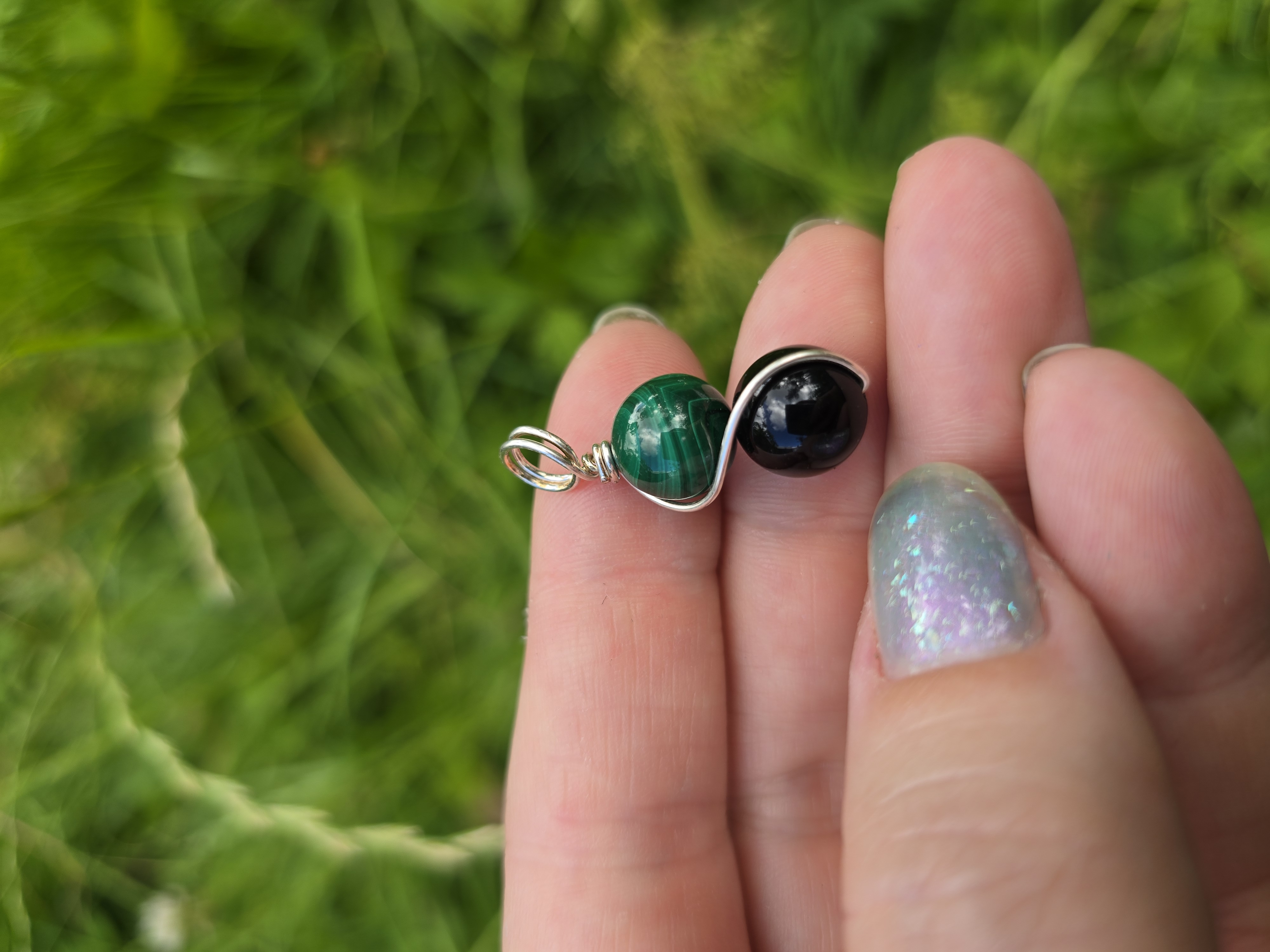 Malachiet en Obsidiaan duo hanger
