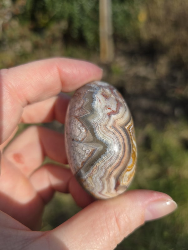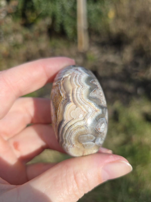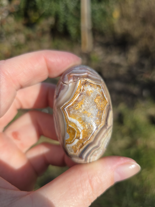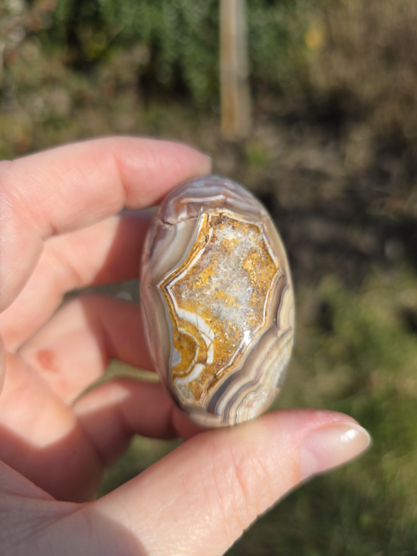 Dit stuk heeft prachtige patronen en kleuren, er zit ook een ruw gedeelte met mooie druzy.
