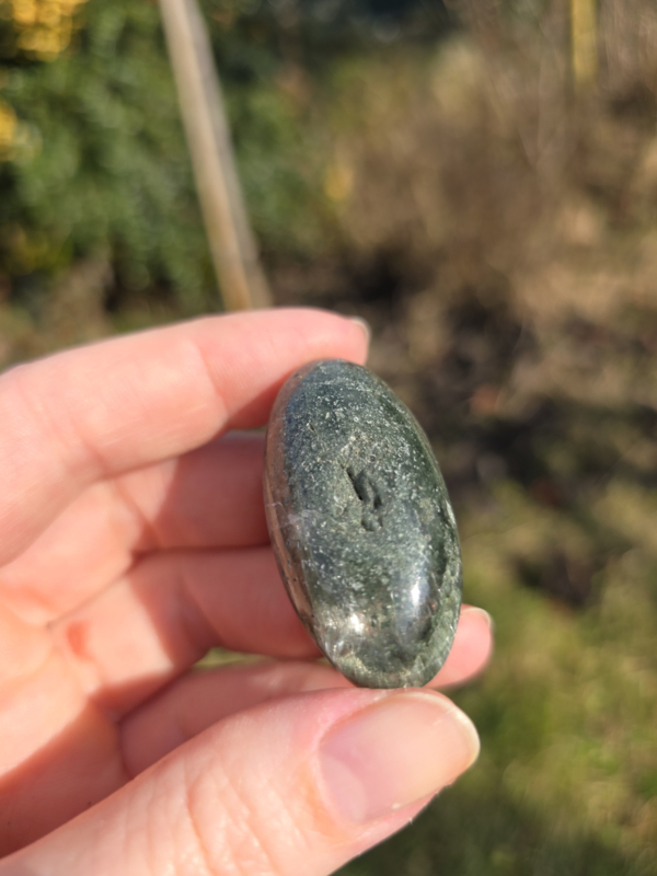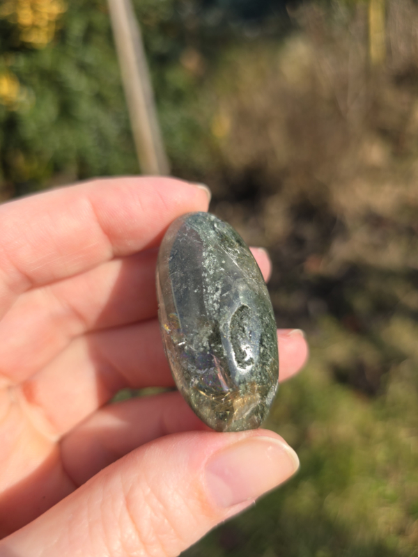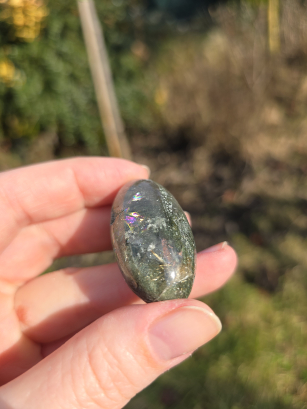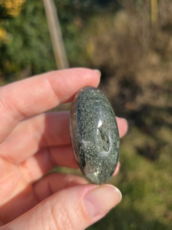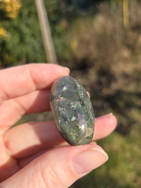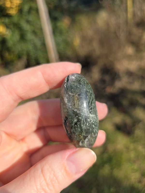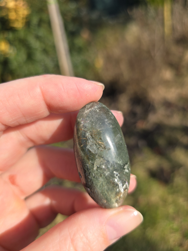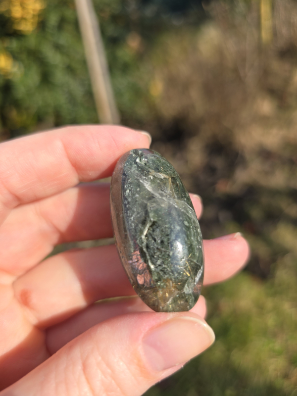 Dit stuk heeft prachtige rutiel naalden die prachtig in het licht bewegen en door de lagen lodoliet blijf je ernaar kijken. Dit stuk is mooi gepoolijst maar heeft wel natuurlijke pockets waardoor die voor mij alleen maar leuker is.
