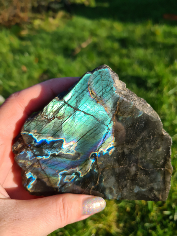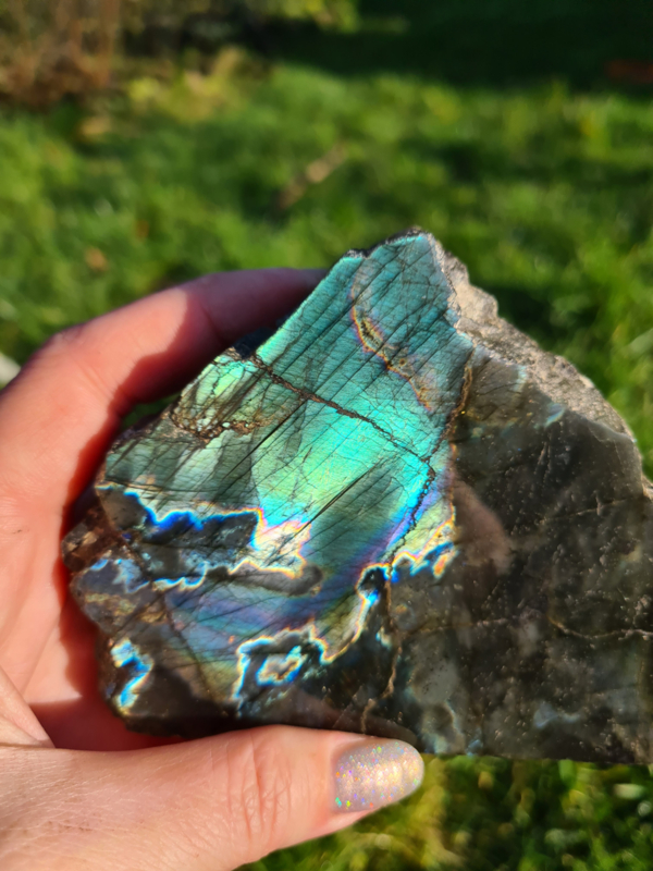 Labradoriet half gepolijst (groen/blauw)