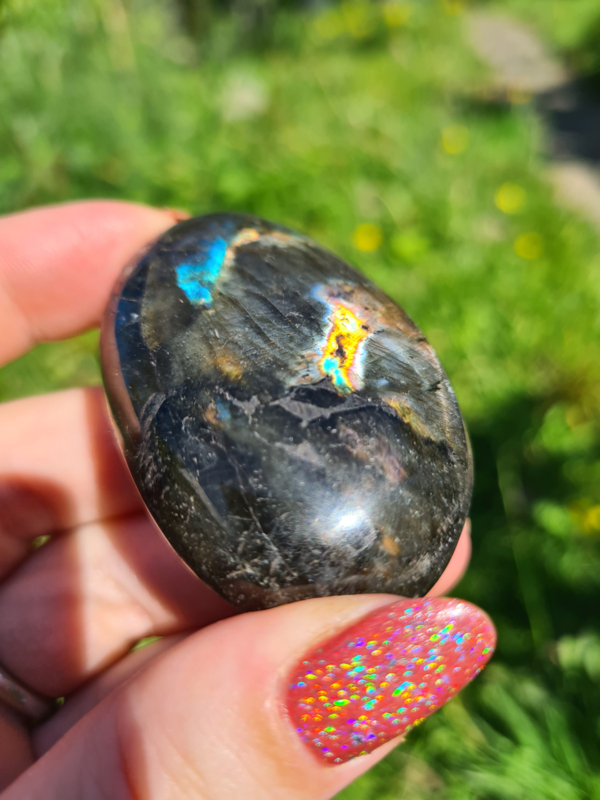 Ik heb een foto's gemaakt in de zon buiten zodat je een zon goed mogelijk beeld van elke steen krijgt! De 1 is wat meer kleurijk dan de andere, en de andere meer sheen. Maar allemaal net zo bijzonder. Allemaal one of a kind.