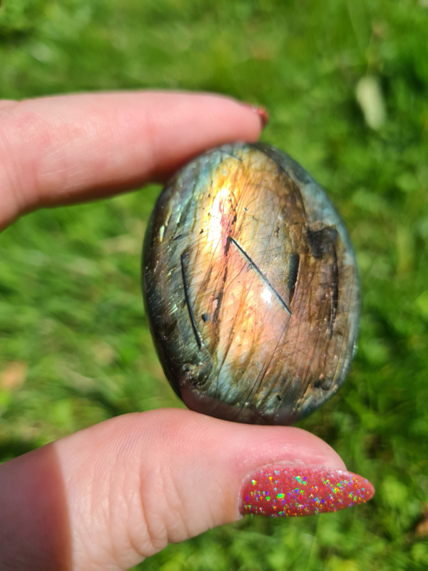 Deze is echt het meest fel van alle labradoriet palms die ik heb wow!