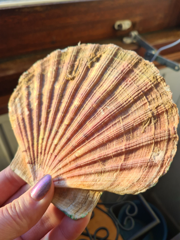 (de schelpen waarmee zij werkt zijn oesters en Sint Jacobsschelpen!)