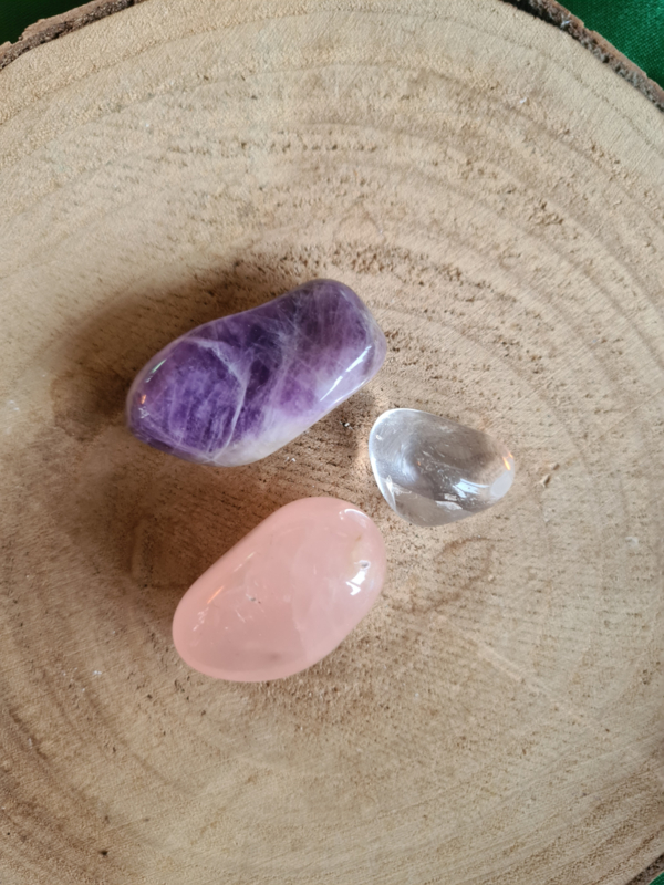 De edelstenen gouden driehoek set bevat zorgvuldig geselecteerde kristallen die samen een krachtige energie creëren. Deze set is ontworpen om balans, harmonie en positieve energie te bevorderen. De drie stenen in de set, vaak gekozen op basis van hun complementaire krachten, werken in synergie om je te ondersteunen bij persoonlijke groei, helderheid en innerlijke rust. Perfect voor meditatie, energetische reiniging of als een decoratief en spiritueel hulpmiddel in je huis of op je werkplek.